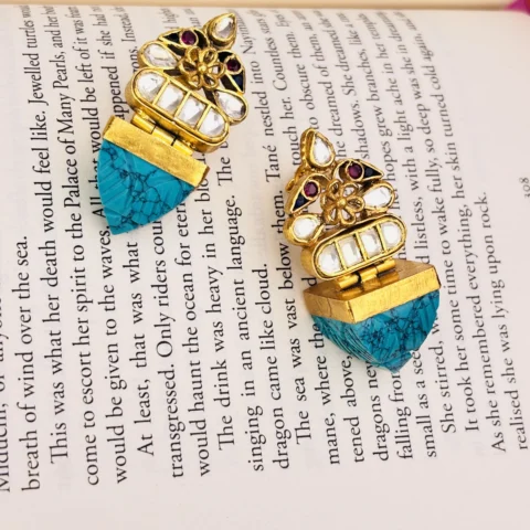 925 Silver Gold-Plated Turquoise & Kundan Fusion Earrings
