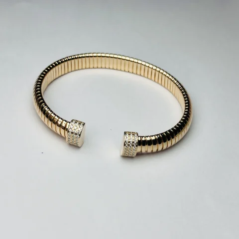 Premium 925 Sterling Silver Rose Gold Plated Open Cuff Bracelet with CZ Accents