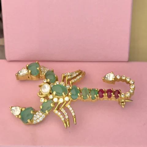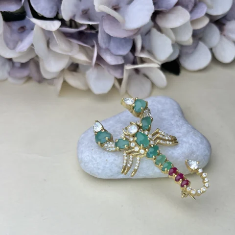 925 Sterling Silver Gold-Plated Scorpion Brooch with Green & Ruby CZ Stones