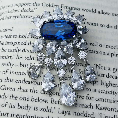 925 Sterling Silver Royal Blue Crystal Statement Brooch with CZ Diamond Detailing