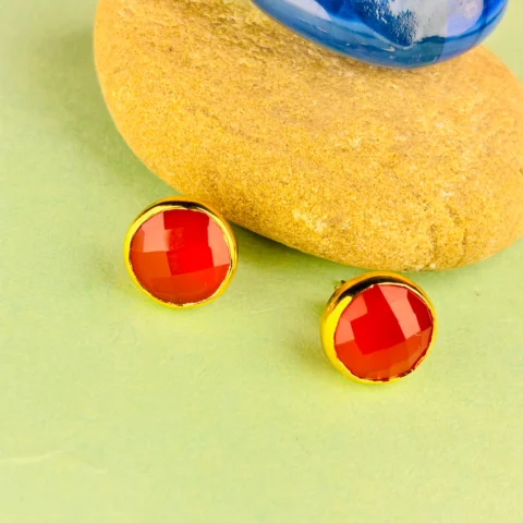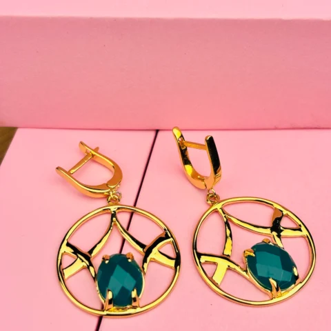 Gold-Plated 925 Silver Round Drop Earrings with Teal Faceted Stone