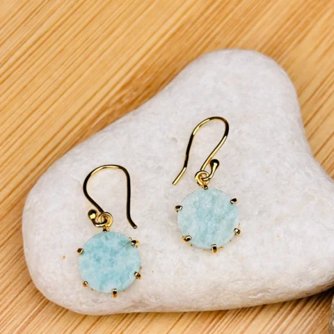 Gold-Plated 925 Silver Drop Earrings with Natural Aqua Blue Stone