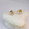 Store your earrings in their protective box to prevent scratching. Gently wipe with a soft, lint-free cloth after each use. Avoid contact with harsh chemicals, perfumes, or excessive moisture to preserve the natural beauty of the gemstones and gold finish.