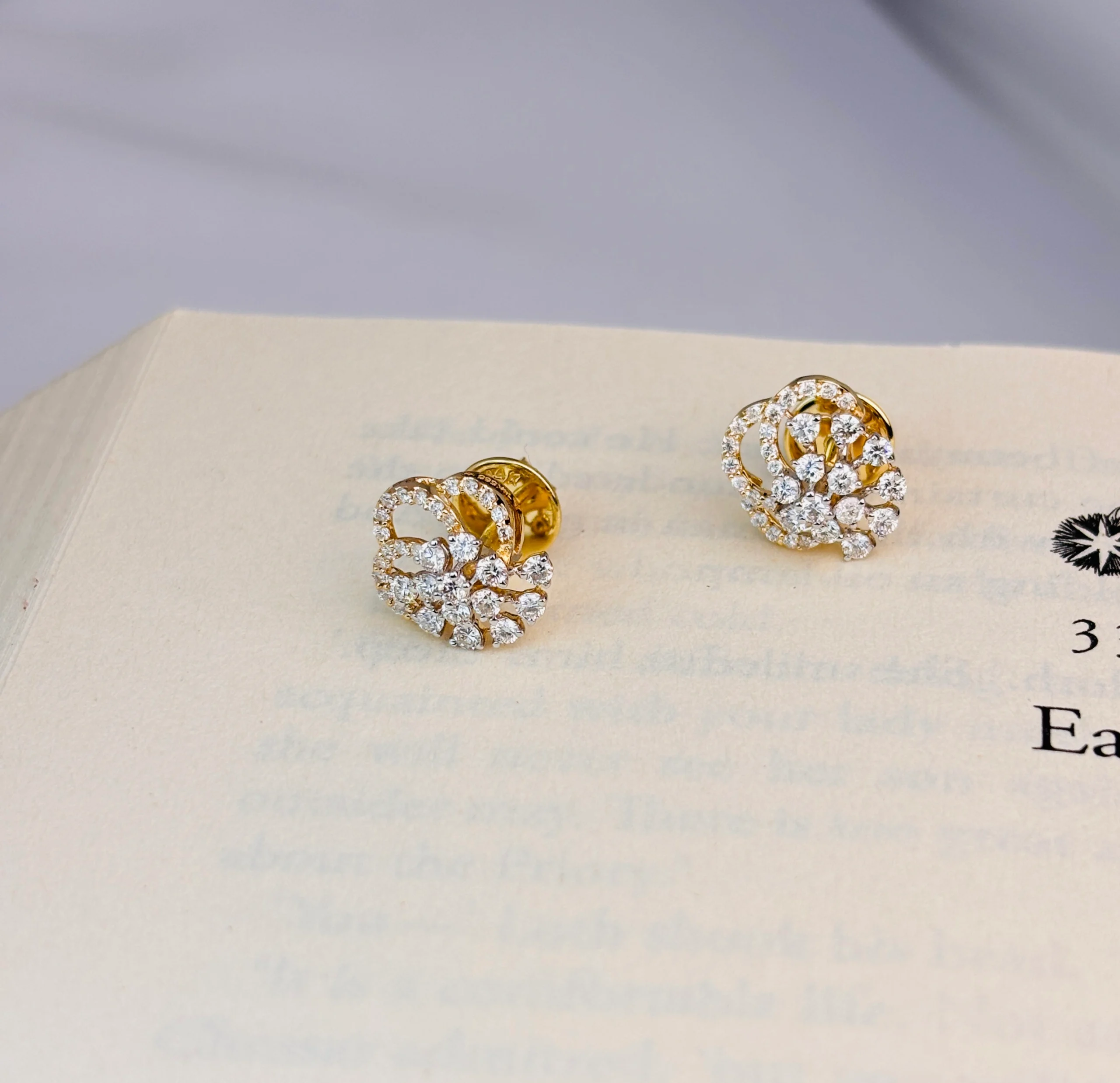 14KT Gold Floral Diamond Stud Earrings – Luxury Cluster Design