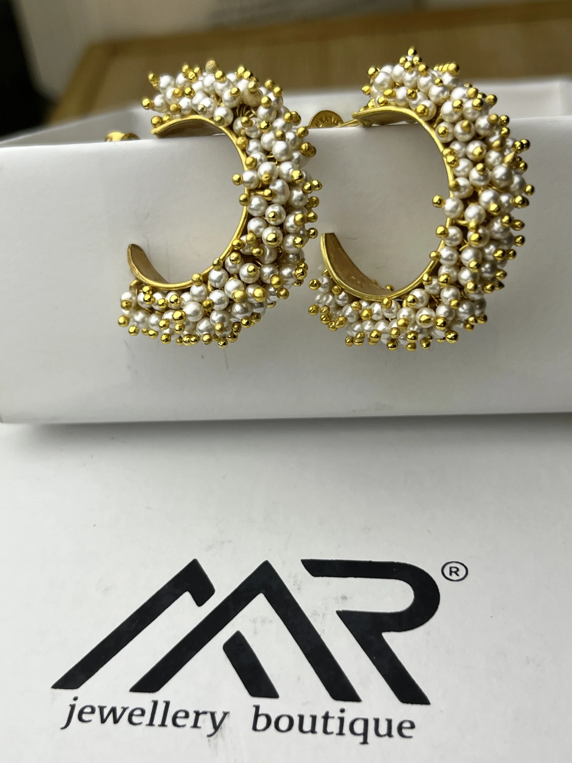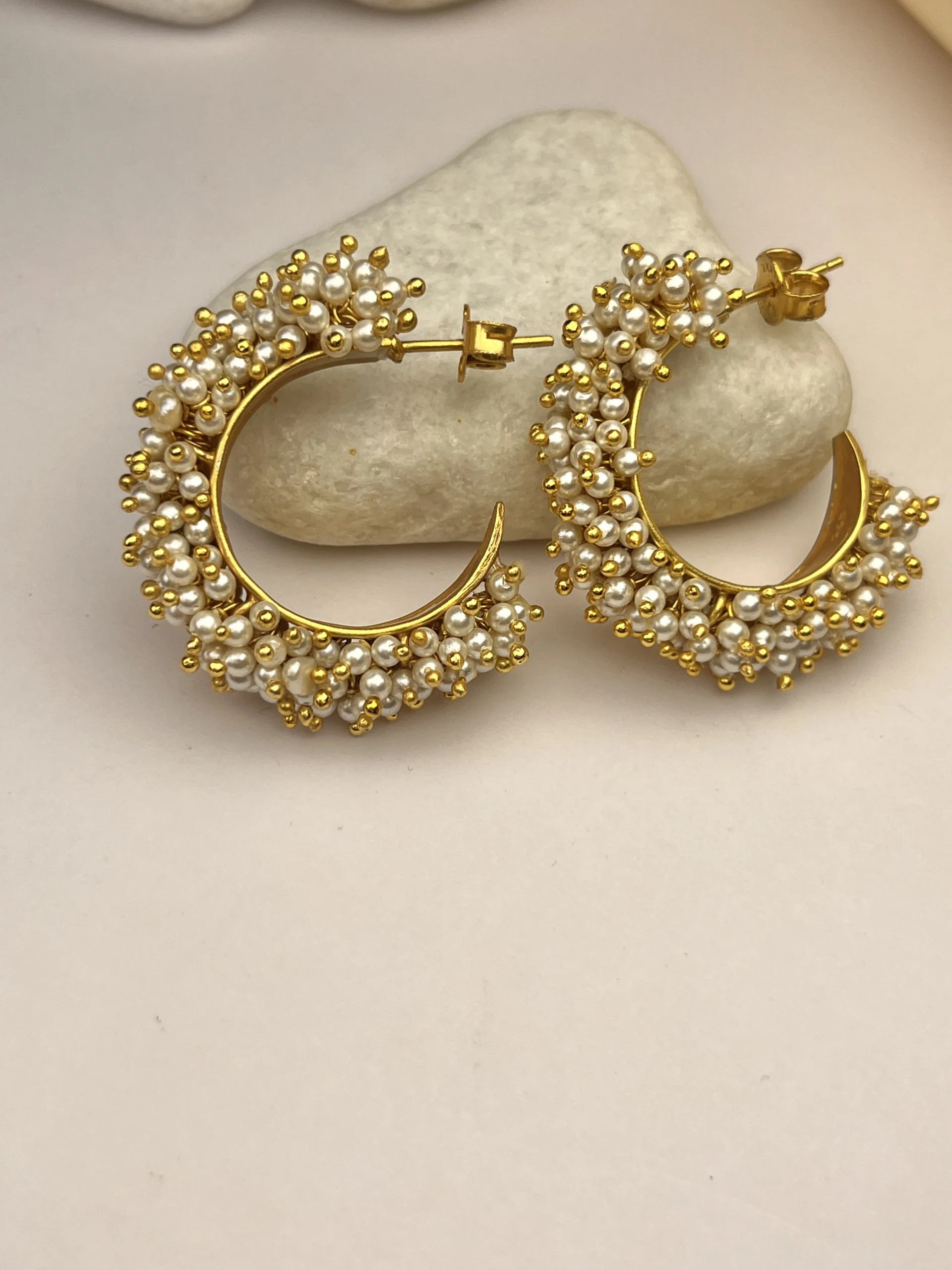 โ Elegant pearl-studded hoop design
