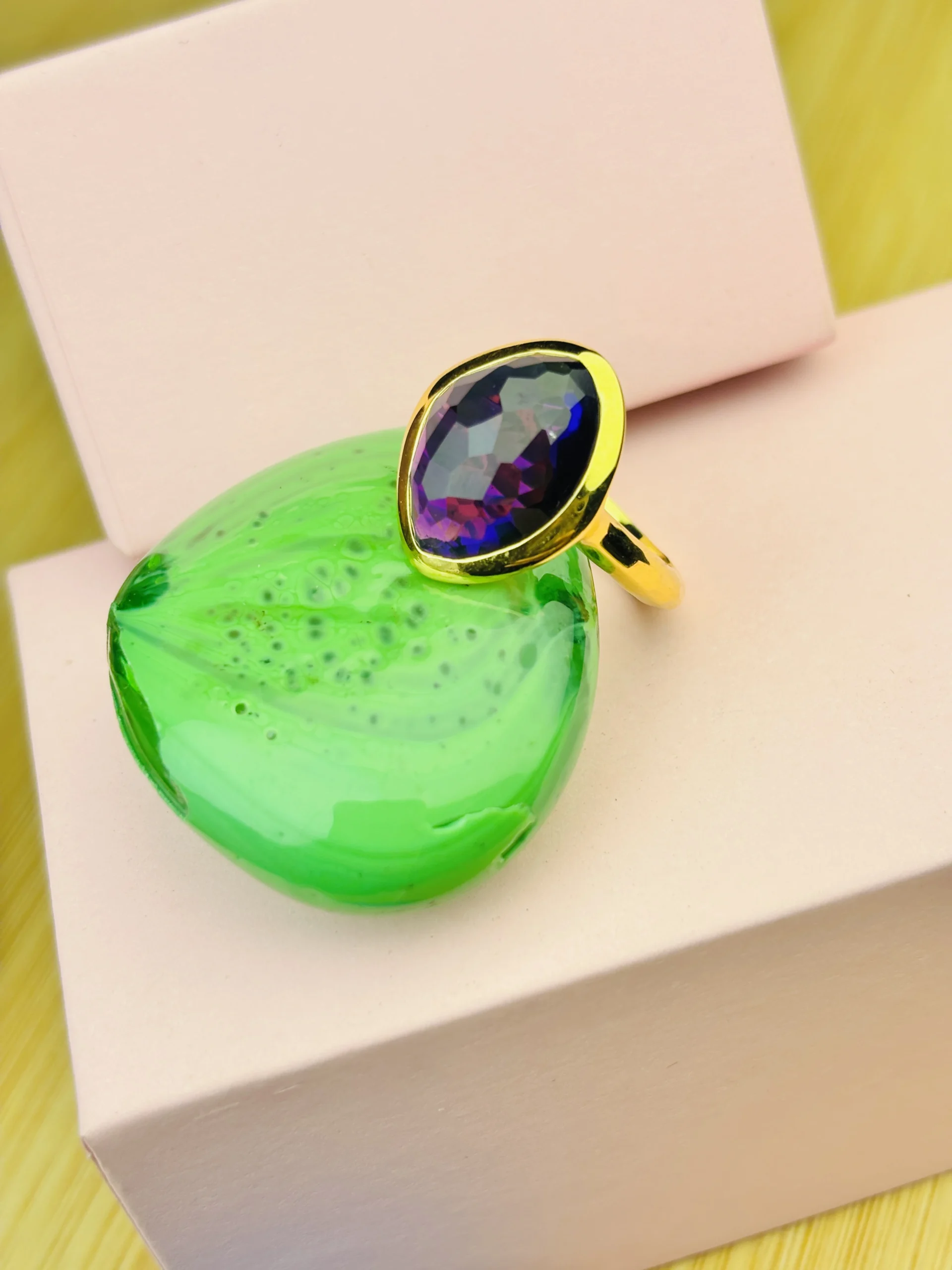 Add a touch of elegance and color to your jewelry collection with this beautifully crafted 925 Sterling Silver Ring, featuring a vibrant faceted purple teardrop gemstone. The gemstone’s rich, luminous hues—ranging from deep violet to soft magenta—create a captivating sparkle with every movement, making this piece a standout accessory for any occasion.