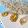 Be the first to review “Antique Gold Pendant Set with Black Stone & Floral Kundan Design”