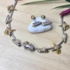 Be the first to review “Elegant Silver Bracelet with Blue and Pearl Floral Charms”