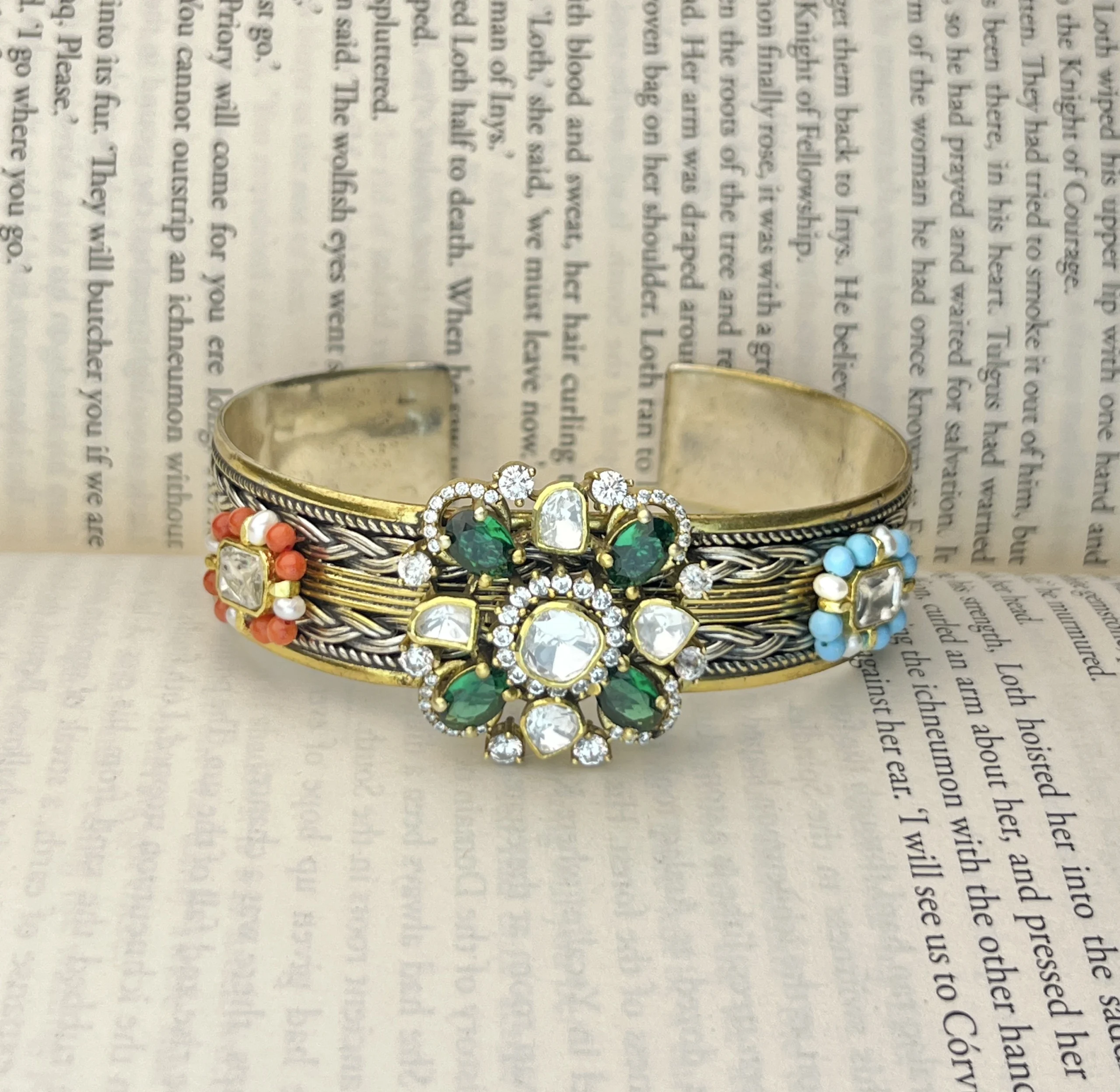 Royal 925 Sterling Silver Dual-Tone Floral Kundan Statement Bracelet