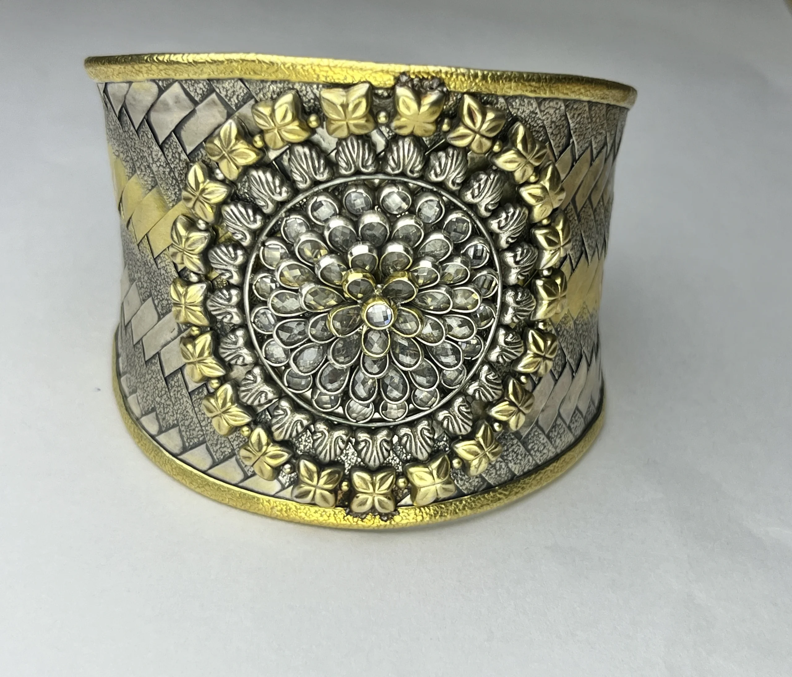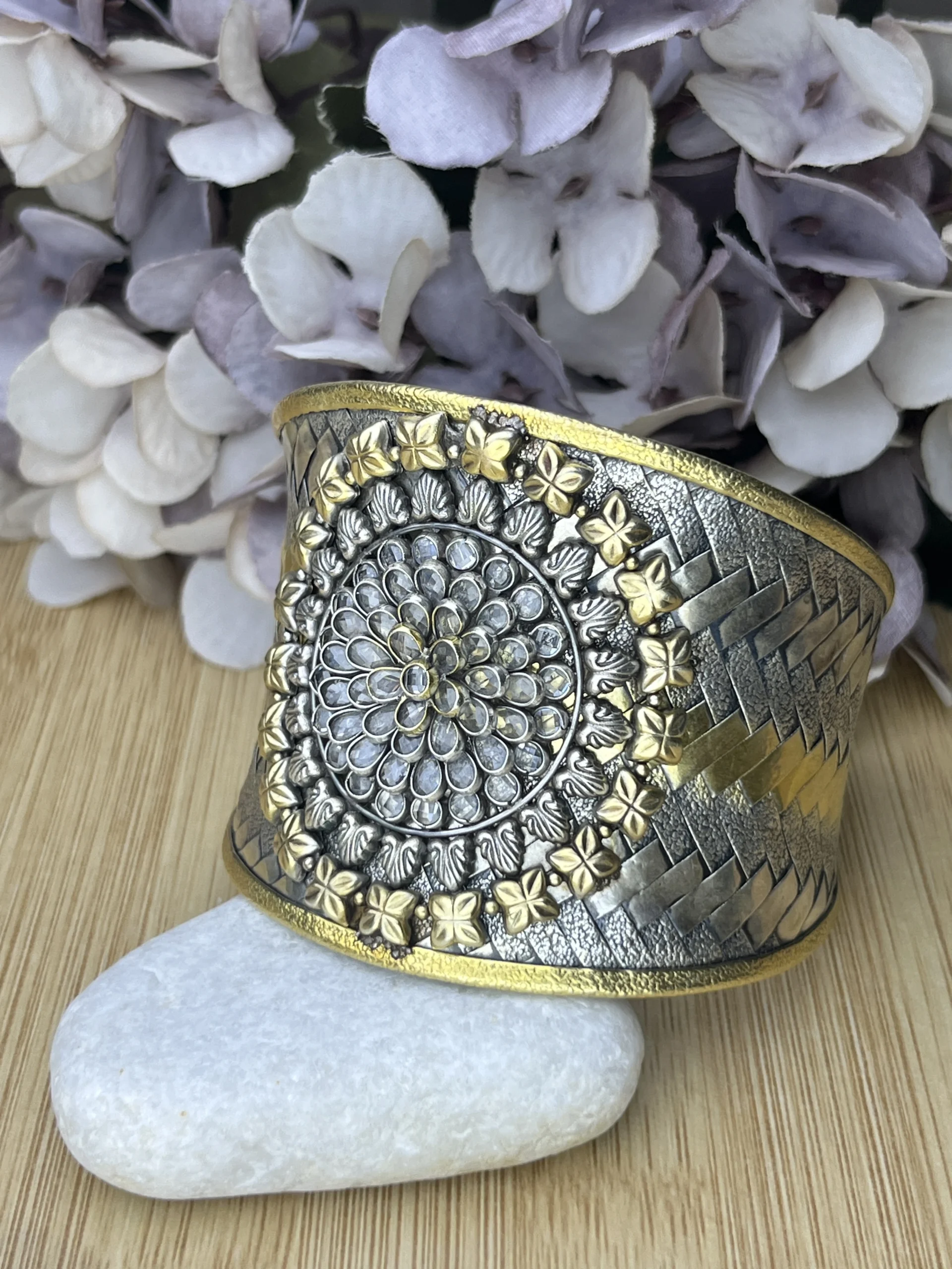 Royal 925 Sterling Silver Dual-Tone Floral Statement Cuff Bracelet