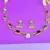 The sleek hasli band is adorned with multicolor semi-precious stones, each set in intricate floral motifs that shimmer with timeless charm. At the center lies a captivating pear-shaped stone pendant, adding a touch of sophistication and grandeur. The set is completed with matching stud earrings, designed to complement your festive and bridal look perfectly.