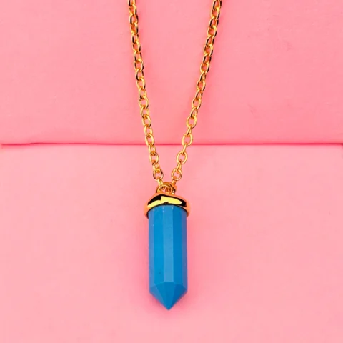 Handcrafted Blue Quartz-Style Point Necklace on Sterling Silver Chain