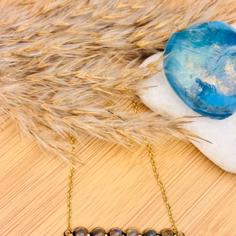 Handcrafted Labradorite Multi-Stone Bar Necklace – Sterling Silver Chain